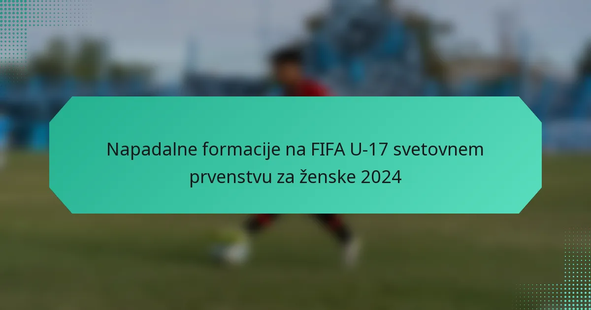 FIFA U-17 svetovno prvenstvo za ženske 2024 prikazuje več ključnih napadalnih formacij, ki jih ekipe uporabljajo za maksimiranje svojega potenciala za zadetke. Te formacije vključujejo 4-3-3, 4-2-3-1, 3-5-2 in 5-3-2, pri čemer vsaka ponuja posebne taktične prednosti in strategije, ki vplivajo na igro in uspešnost.