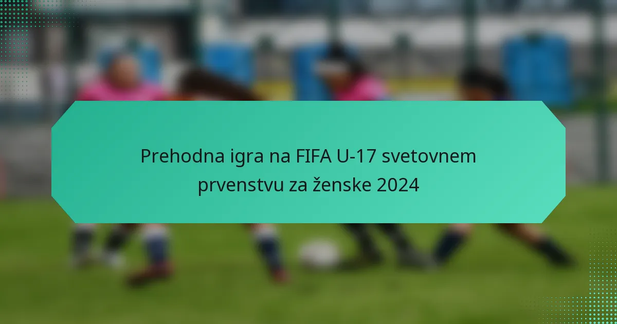 Prehodna igra na FIFA U-17 svetovnem prvenstvu za ženske 2024 poudarja pomen hitrih prehodov med obrambo in napadom, kar ekipam omogoča izkoriščanje ranljivosti nasprotnikov. Ta taktični pristop je ključen za ustvarjanje priložnosti za zadetek in krepitev obrambnih postavitev, kar ga dela ključni element turnirja. Ekipe, kot so Združene države, Nemčija in Brazilija, so pokazale svojo spretnost pri izvajanju učinkovitih prehodnih strategij, pri čemer poudarjajo hitrost in učinkovitost na igrišču.